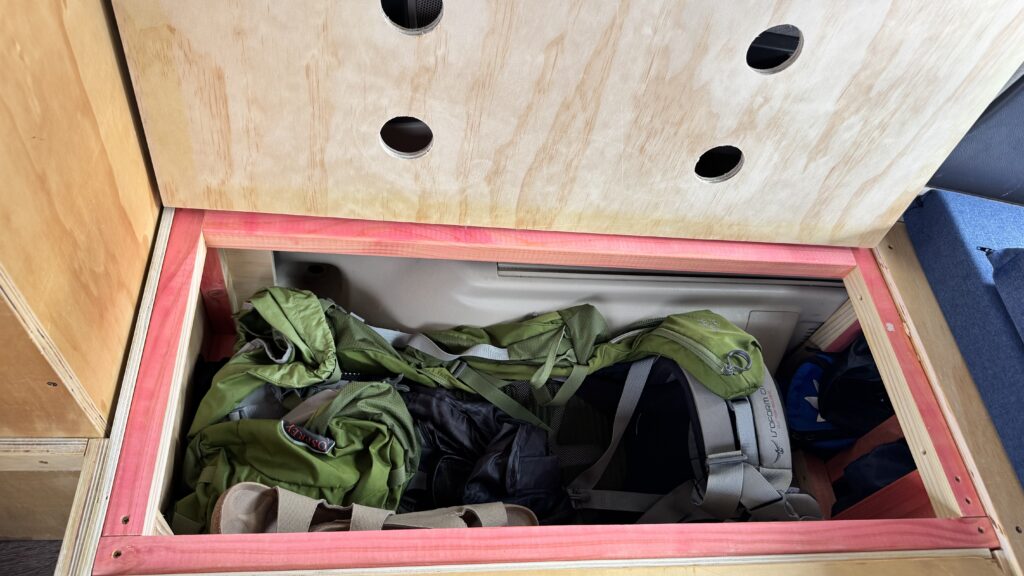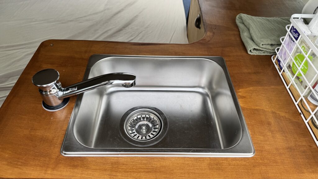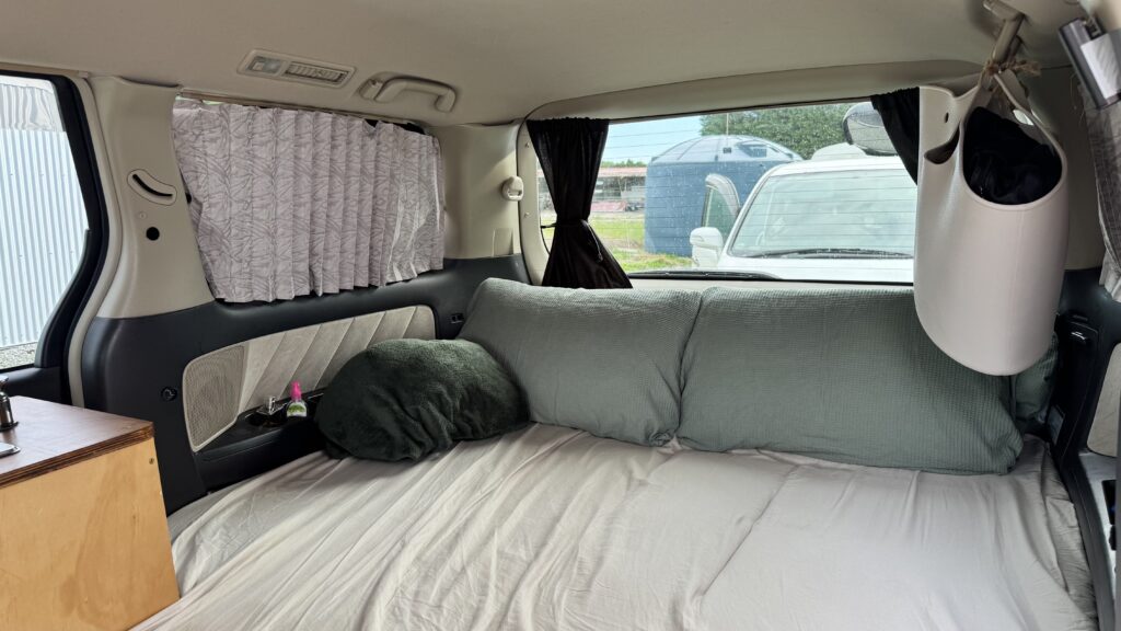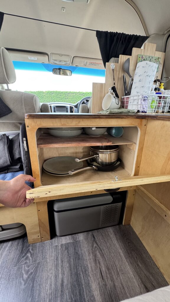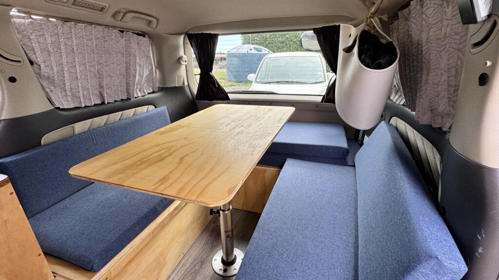 The car has been modified into a self contained camper in November 2025 by @Want This RMVT in Christchurch, the build quality speaks for itself, especially the kitchen and sink setup are great for rainy or cold days and due to the automatic windows in the rear there is no need to get out while cooking or doing the dishes.
