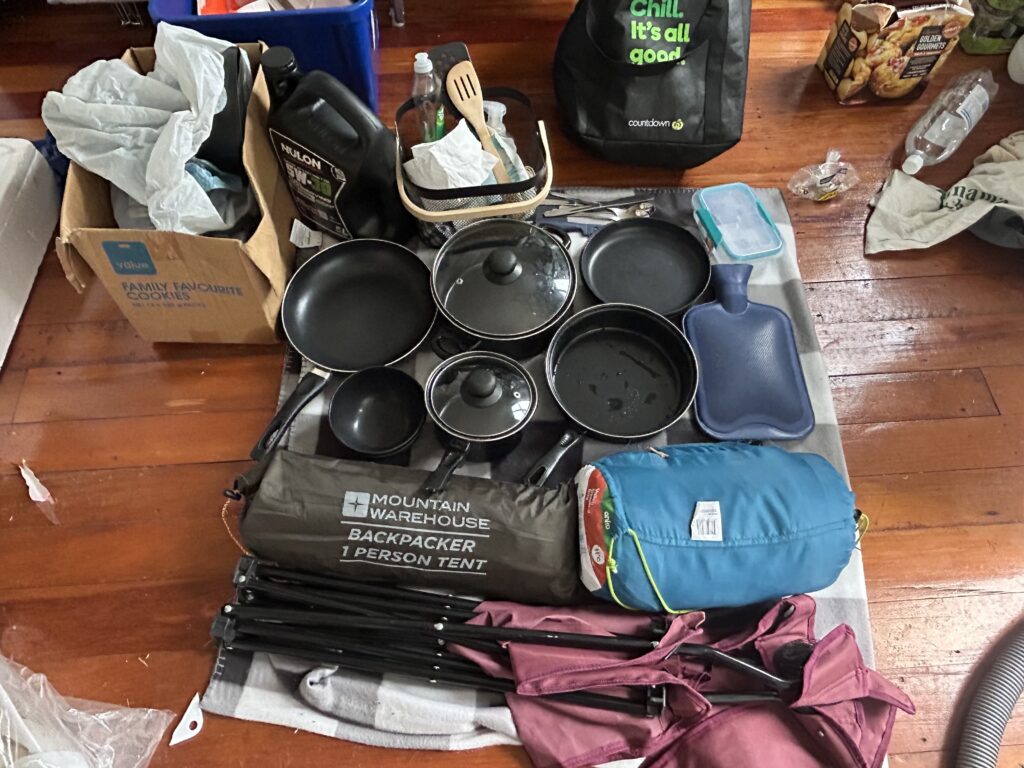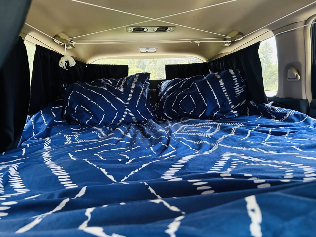β€’ πŸ•οΈ camping chair, one person tent, 3 small mattresses (+blanket and 2pillows) for sleeping in your car
